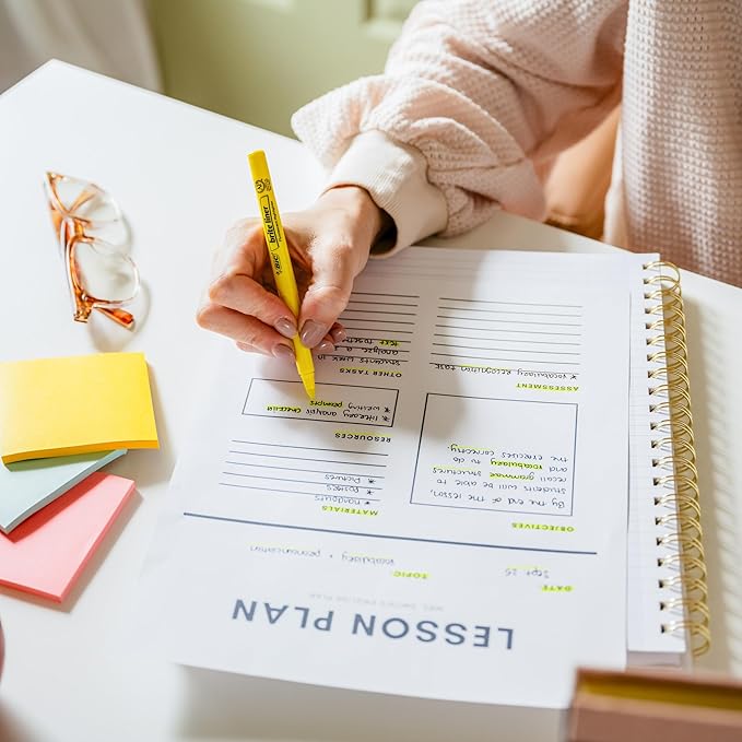 - Highlighter set with translucent ink that emphasizes what's important on the page without obscuring the highlighted text