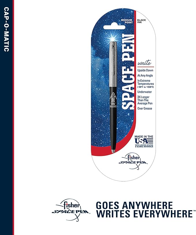 - A Pen Designed to Last: The Cap-O-Matic Space Pen features a single-hand activation, a durable chrome finish, ideal for professionals who need a reliable, affordable pen
