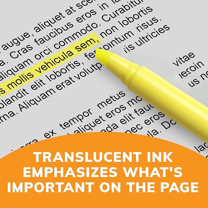 - Highlighter set with translucent ink that emphasizes what's important on the page without obscuring the highlighted text