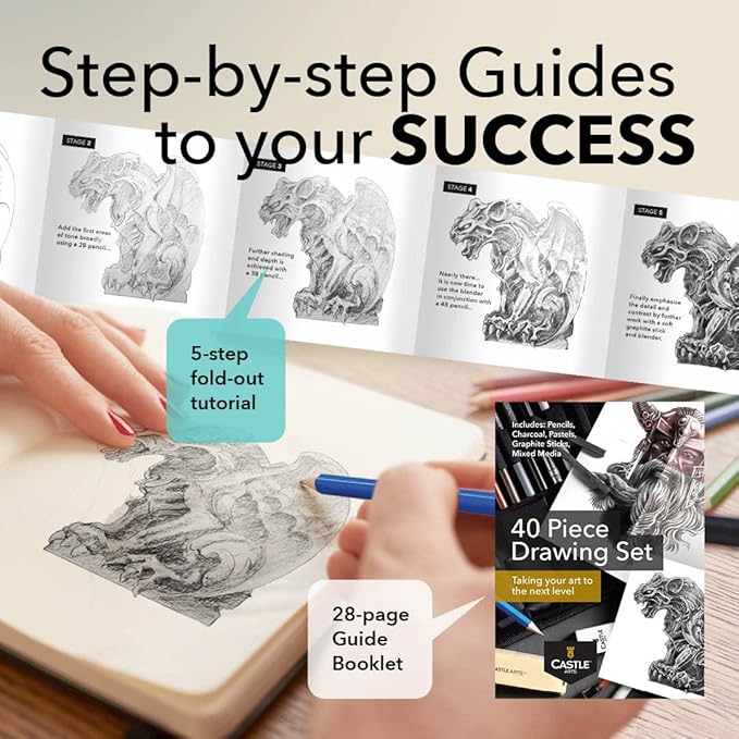 Castle Art Supplies 40 Piece Premium Drawing and Sketching Set with Tutorial | for Artists, Professionals or Beginners | Pencils, Charcoal, Graphite and More | in Neat Carry-Anywhere Zipper Case