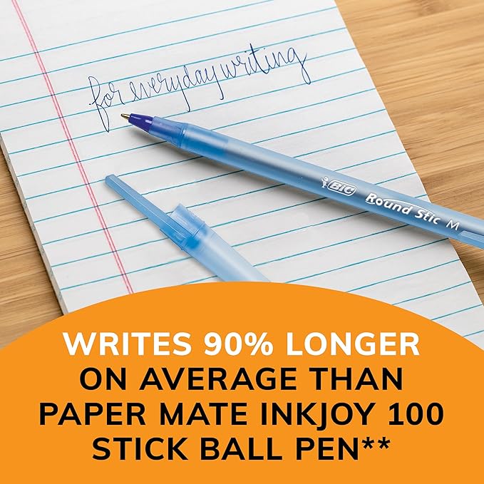 BIC Round Stic Xtra Life Blue Ballpoint Pens, Medium Point (1.0mm), 144-Count Pack of Bulk Pens, Flexible Round Barrel for Writing Comfort, No. 1 Selling Ballpoint Pens