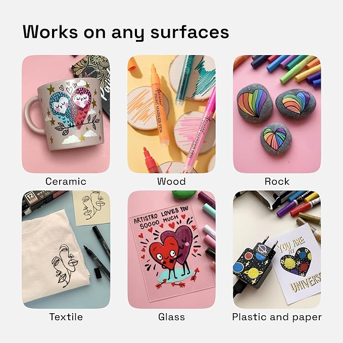 - NON-TOXIC: Each acrylic marker conforms to ASTM d-4236 and EN-71 standards. Each acrylic pen has a transparent anti-roll barrel to see the paint in the acrylic paint marker. Acrylic markers paint pens are great for any artist!