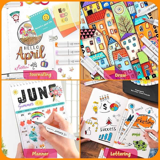 - 🎨Color-Coded Caps & Bonus Case: The color-coded caps allow for ease in organization and to identify colors quickly. Ergonomic design makes working with these brush markers easy for a long time. Equipped with a beautiful form-fitting black carrying case perfect for traveling and storing! Great gift idea for Christmas, Thanksgiving, art teachers, school students, families, friends, girls.