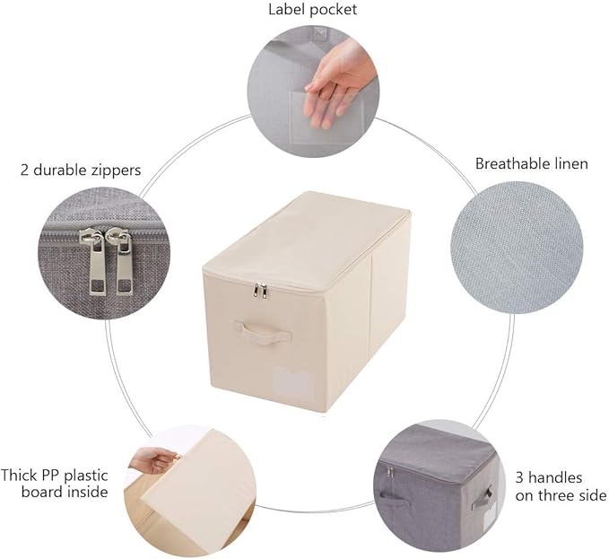 iwill CREATE PRO Pack of 2, Zip Lidded Wardrobe Storage Bins,Collapsible Fabric Storage Boxes for Clothing, Bedding, Toys, Blankets Organizer, Foldable & Washable, Beige
