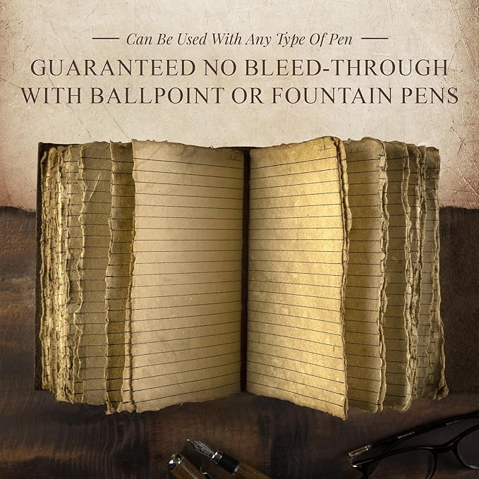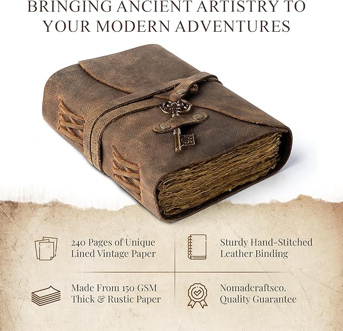 - Handmade Vintage Paper - As with all of the Nomad products, the Vintage Leather Journal with Key is handmade. Made with 240 lined pages that’s handcrafted to look like an antique paper, making it look like it was pulled from the library’s history section.