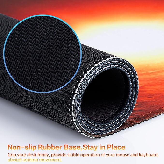 - 【Large and Extended Size】The size of this XXL large mouse pad is 31.5×15.7inch,which is big enough to fit your full-sized keyboard, mouse, laptop,or other item on the desk,providing more space for professional gaming or office work. Besides,you can also use this extended mouse pad as a desk pad,writing pad,platform protection mat. Keep your desk clean and uncluttered.