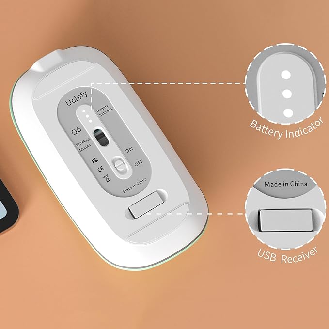 Uciefy Q5 Slim Rechargeable Wireless Mouse, 2.4G Portable Optical Silent Ultra Thin Wireless Computer Mouse with USB Receiver and Type C Adapter, Compatible with PC, Laptop, Desktop (Mint Green)