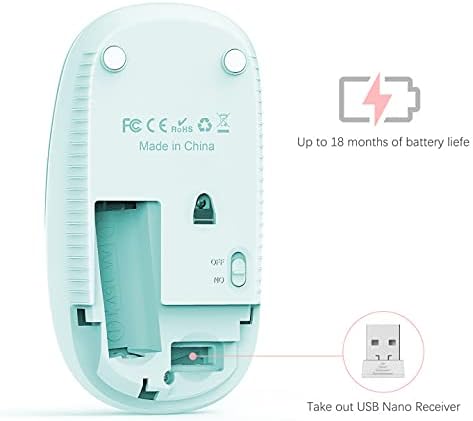 VssoPlor Wireless Mouse, 2.4G Slim Portable Computer Laptop Mouse with Nano Receiver Quiet Silent Optical Mice for Notebook, PC, Laptop, Computer-Mint Green to Purple