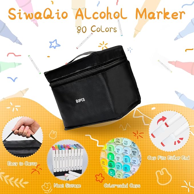 - VIBRANT COLORS: Unleash your creativity with 80 dazzling, fade-resistant colors—perfect for everything from casual coloring to detailed artistic projects. The alcohol based markers set deliver smooth blending, bold and even coverage with no blotches or streaks. Turn your ideas into vibrant, colorful reality