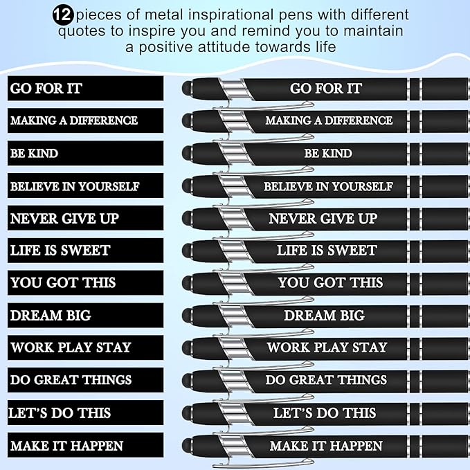 Zonon 12 Pcs Inspirational Pens Bulk Funny Ballpoint Pen with Stylus Tip Motivational Gifts for Christmas Teacher Coworkers Nurse School Office Supplies(Black,Motivational Style)