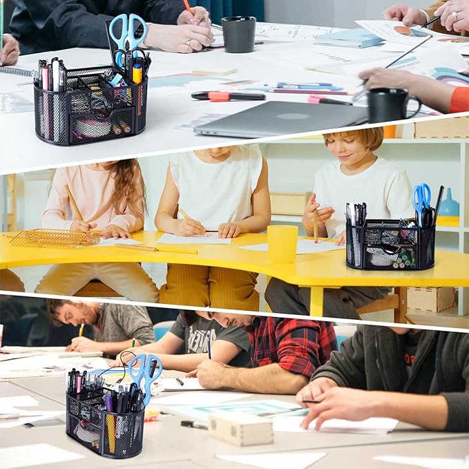 - High-quality Desk Caddy - This pen organizer for desk is completely made of metal, has no rough edges, joins are secure, quality of metal mesh is strong which provides a long-lasting, versatile workspace. Workspace organizer with the non-skid bottom pads, holds your stationery in place without sliding and prevent scratches on your desktop.