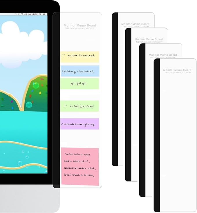 - DURABLE MATERIAL: Left and Right Display sides panel is made of transparent acrylic material, durable, simple and stylish. Monitor memo board is easy to fit, just tear off the sticker and hang it on the edges of both sides of the monitor screen.