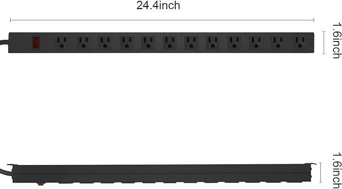- Wide Spaced Power Strip: 12 wide spaced outlets, the center-to-center distance between AC outlets is about 1.65inch(4.2cm), which is very suitable for large plugs. Connect with 3 ft 14AWG power cord. This long power strip Rating: 15A, 125V, 60Hz, 1875W.