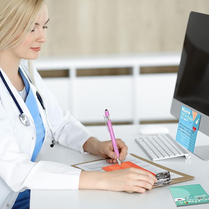 Geyee 24 Pcs Nurse Sticky Notes with Funny Pens Fun Notepads for Adults Coworkers Nurse 3 x 4 Inch to Do List Notepads with Sayings Pen for Lab Week Gifts Teacher Office Supplies