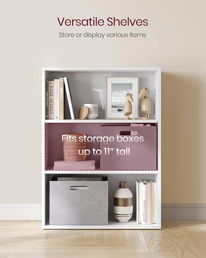 VASAGLE CUSTOS Collection - Bookshelf, 3-Tier Bookcase, Book Shelf, Open Storage Shelf, 9.4 x 23.6 x 32 Inches, for Living Room, Home Office, Dinning Room, Cloud White ULBC163T14