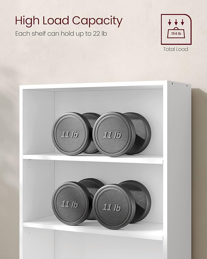 - 【STURDY, STABLE, SAFE】Constructed from premium particleboard and MDF, this robust bookshelf can support up to 22 lb per tier. The H-shaped structure and slot-in back panel augment stability, while the included anti-tip kit ensures safety