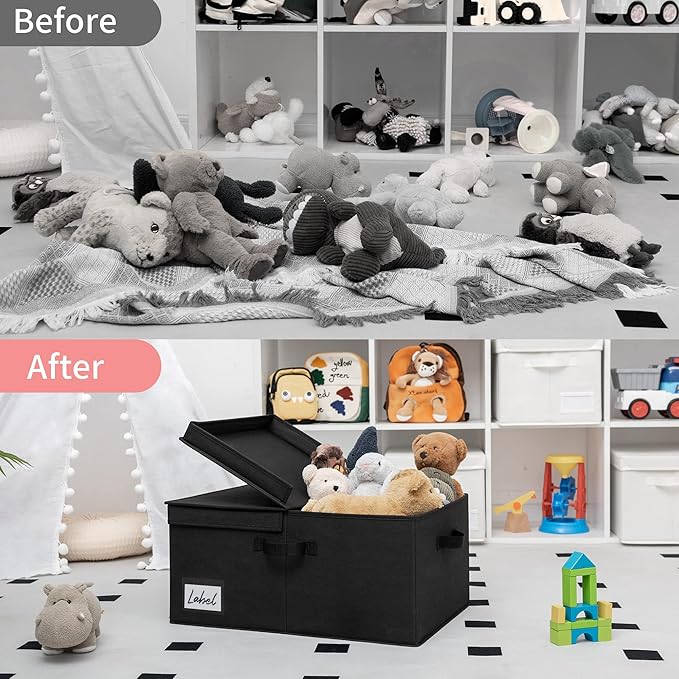 - 【Versatile Function】The large fabric storage box with lid is perfect for organizing the closet, shelf, bedroom, play room, living room, wardrobe, laundry room, office, RV, and camping.