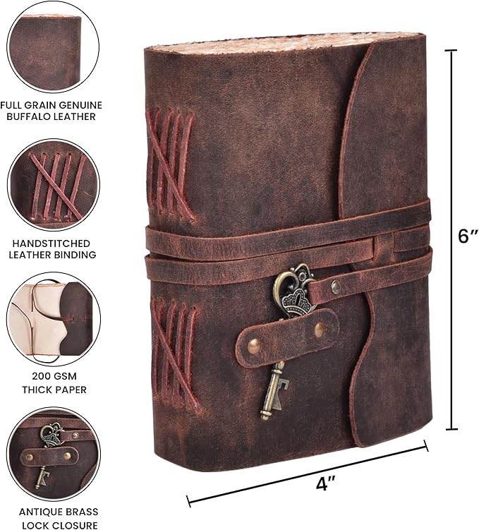 - One-of-a-Kind: Crafting these journals with Genuine Leather and Hand-Dipped Paper ensures that each journal possesses distinct variations in appearance and shading, resulting in a truly unique piece. The texture and color of both the leather and paper may naturally differ, adding to the individuality of each journal.