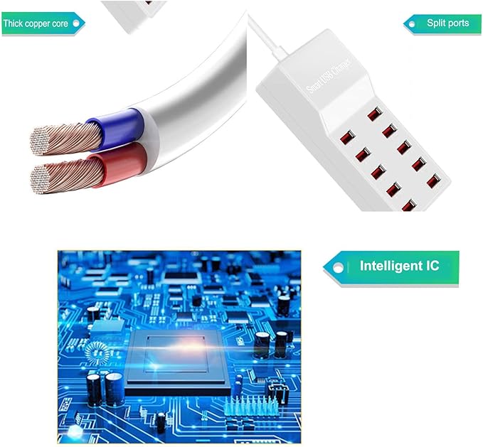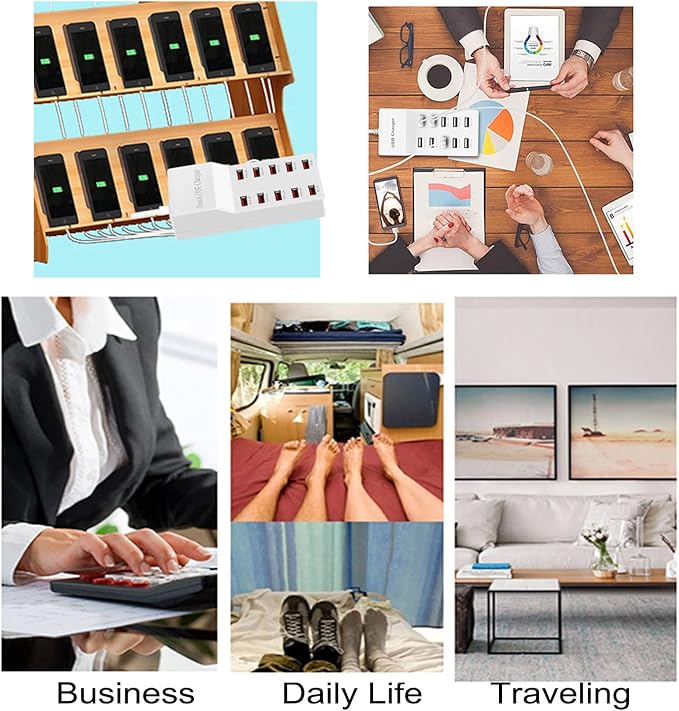 - [Up to 10 Ports USB Charger]- Euipped with up to 10 Ports,the USB Charger Station supports charging multiple device usb charging station hub charger block multiple ports iphone devices power strip 10 port 10A 50w outlet multis at same time. It can not only charge your family devices without having to worry about looking for available outlets, but also make your traveling easier and more convenient than ever before.