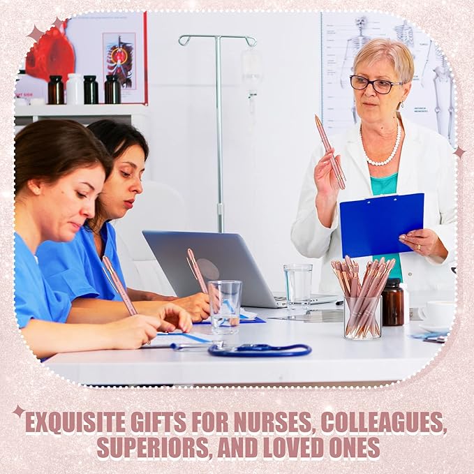 Zonon 12 Pcs Inspirational Pens Bulk Funny Ballpoint Pen with Stylus Tip Motivational Gifts for Christmas Teacher Coworkers Nurse School Office Supplies(Rose Gold,Nurse Style)