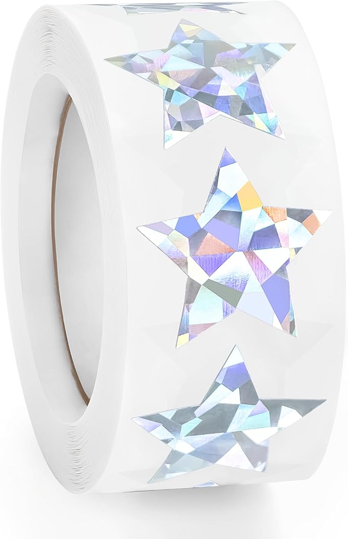 500 PCS Holographic Silver Star Stickers, 1 inch Self Adhesive Metallic Glitter Foil Stickers Sparkly Star Sticker Reward Behavior Chart Labels for Kids Students Teachers Supplies