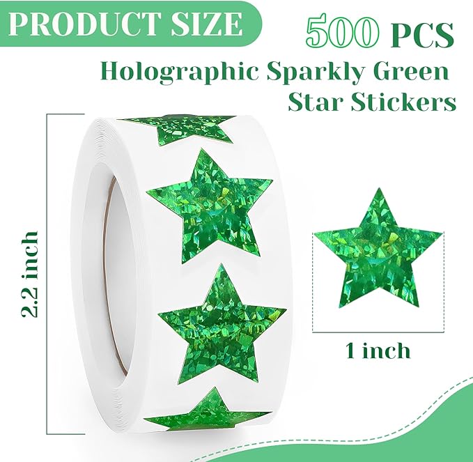 - Package Contents: You will receive 500 pieces of small holographic sparkly green star stickers, each measuring about 1 inch, enough quantity to meet your daily decoration needs