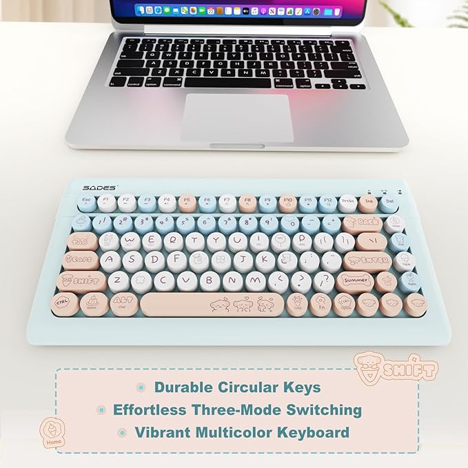 - 【Bluetooth &2.4G USB Wireless Triple Mode Connection】The lastest bluetooth 5.0 +3.0 technlogy provides cable free&clutter-free connecton at the same time,operating distance of 33FT(10M) without delay.2.4G Wireless Mode for desktop laptop PC without Bluetooth function, plug and play without installing any software or driver,ensures a stable and reliable connection.This cute bluetooth keyboard offers rapid response, zero latency, and delightful tactile feedback with each keystroke.