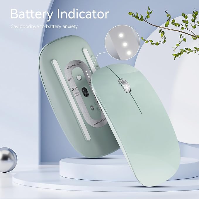 Uiosmuph G11 Wireless Mouse, USB C Rechargeable Computer Mouse, Slim Silent Mice 2.4GHz Optical with USB Nano Receiver and Type C Receiver for Laptop/Mac/PC - Green