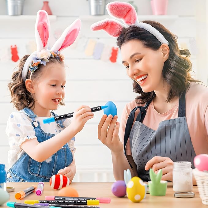 - 【MULTI-PURPOSE】: Enjoy creating art projects on a variety of surfaces, acrylic paint marker set suitable for rock painting, ceramic and mug painting, glass and wine glass painting, wood, fabric, stone, metal, plastic, canvas, Christmas ornament, Halloween pumpkin painting, calligraphy, scrapbook, bullet journal, brush lettering, custom mugs, DIY crafts projects, and much more for both smooth and porous surfaces.