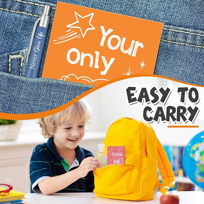 - Portable and Adorable: measuring approx. 3.35 x 4.72 inches/ 8.5 x 12 cm, our motivational notepads are lightweight and compact, small in size yet provides enough space to write your notes; The inspirational pens are about 5.51 inches/ 14 cm long, you can put the inspiring notebook and pen set in your handbag or carry them around, will not take up much space for you