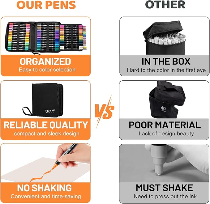 - VIBRANT COLORS: This complete set of TANMIT dual Tip acrylic markers comes with 60 unique and vibrant color options to choose from, rich primary and complementary colors with no duplicates, and each color goes with the corresponding number on the pen for easy identification and organization, making it easy for you to choose exactly the right color every time. A variety of colors allows you to let your imagination run wild and have unlimited creative possibilities~