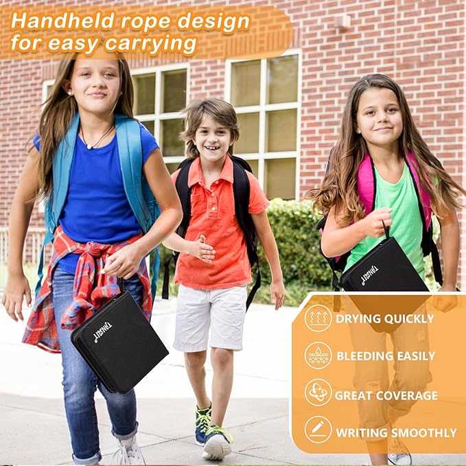- PORTABLE BAG DESIGN: Different from the traditional box, we upgraded the bag design, each pen can be easily seen, layer by layer to greatly improve the sense of use, the creation process is easy and convenient, you can directly get the color you want to use and directly put back. It will not lead to the loss of any pen, whether it is a perfect choice, additional hand-held rope can carry their own works whenever and wherever they are.