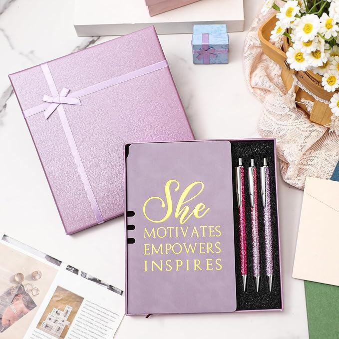 - Complete Package: the inspirational gifts set is a comprehensive package that includes a leather bound journal notebook, 3 ballpoint pen, and a gift box for storing pens and notebook, making it the ideal ready to gift set