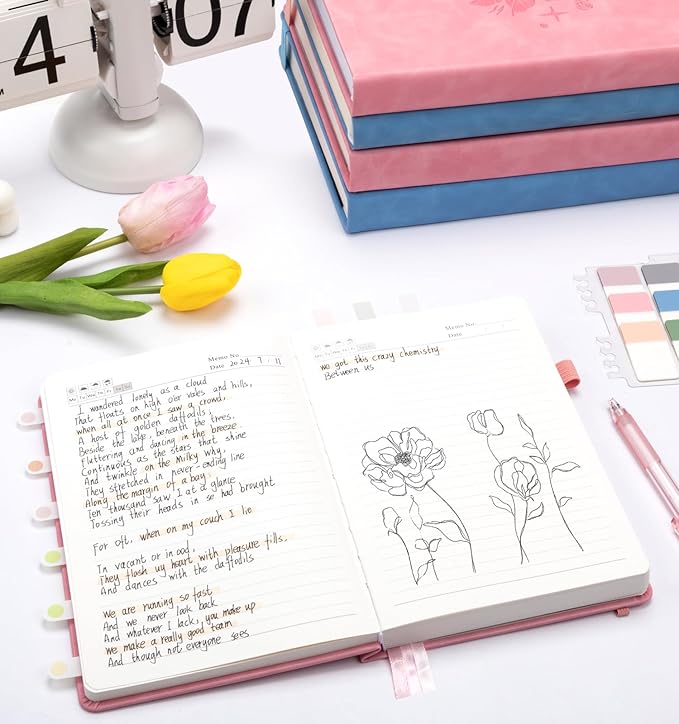 - 【Hardcover Leather&Elegant Design】This lined notebook features a high-quality faux leather cover. The gorgeous "FLOWER" pattern provides a premium look and comfortable feel; The hardcover better protects the pages, combined with sturdy binding, giving you a high-quality writing experience.