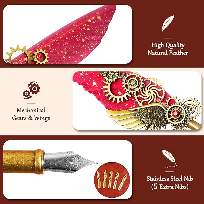 - Perfect Gift:This vintage feather dip pen set is a meaningful gift for beginners or calligraphy enthusiast,perfect for birthdays,Christmas or Thanksgiving—for friends,family,students or lovers.