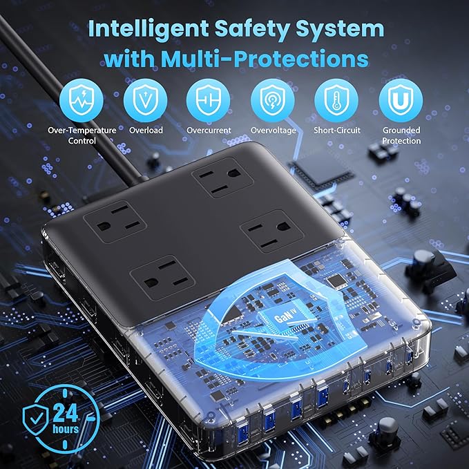 - Special Feature : 200W Super Fast Charging Charging Station, 12-in-1 Flat Plug Power Strip with Extention Cords, 12 Ports (4 AC Outlets + 4 USB C + 4 USB A) Multi-port USB C Charger Block, USB Wall Outlet, Multi Plug Outlet Extender, GaN IV Technology Chip with Multi-lays Safety Protections 200W Super Fast Charging Charging Station, 12-in-1 Flat Plug Power Strip with Extention Cords, 12 Ports (4 AC Outlets + 4 USB C + 4 USB A) Multi-port USB C Charger Block, USB Wall Outlet, Multi Plug Outlet Extender, GaN IV… See more