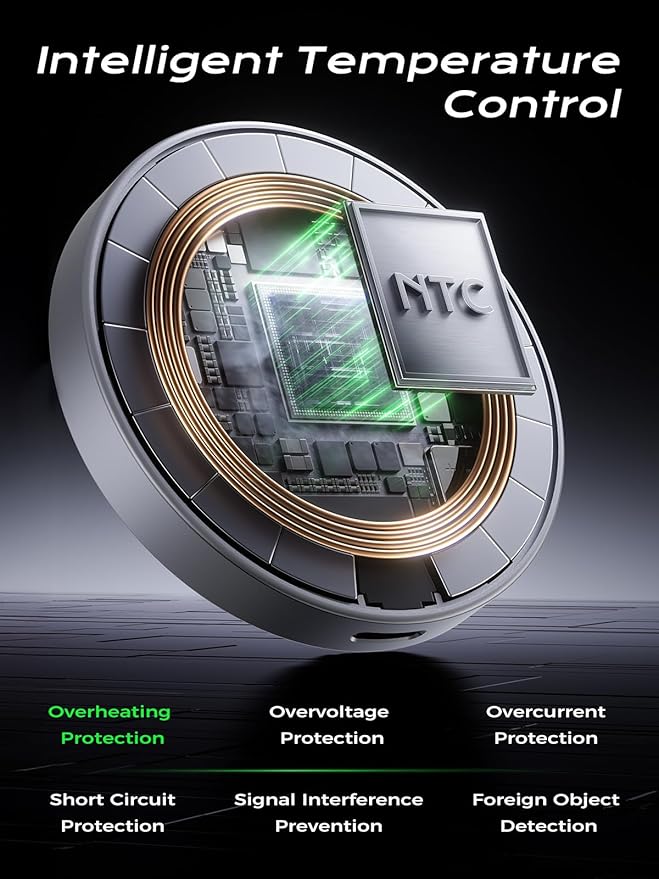 - 【Safety & Reliable】This MagSafe charger features high thermal conductivity graphene material and is equipped with a multi-layer heat dissipation structure, effectively supporting heat dissipation. It also comes with multiple protection features including overheating protection, foreign object detection and intelligent temperature control. When the battery reaches 80%, it automatically switches to a charging mode with a trickle current to prevent overconsumption of the device's battery. This protects the battery while ensuring safe charging, allowing you to sleep peacefully every night.
