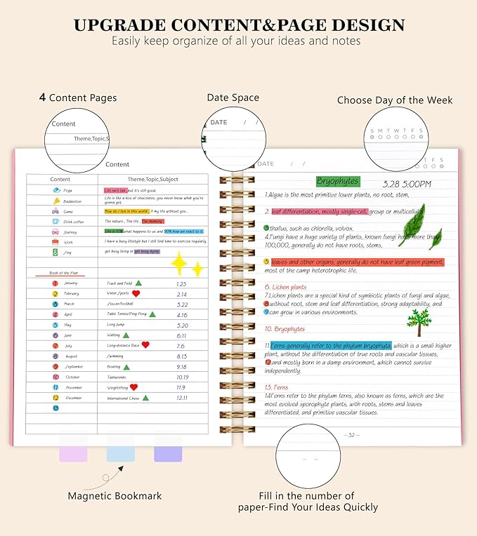 - 【360 Pages Thick Notebook Journal】Each lined journal 360 pages, offering enough space to write in.The new page design allows you to fill in the page numbers yourself. By using a notebook with page numbers and a 4-page blank table of contents, you can jot down important notes from various pages and note them in the front of the journal for easy and fast reference. Each page has a day and day of the week selection to help you keep track of the date.