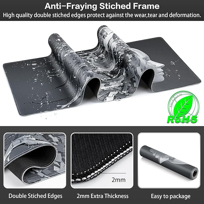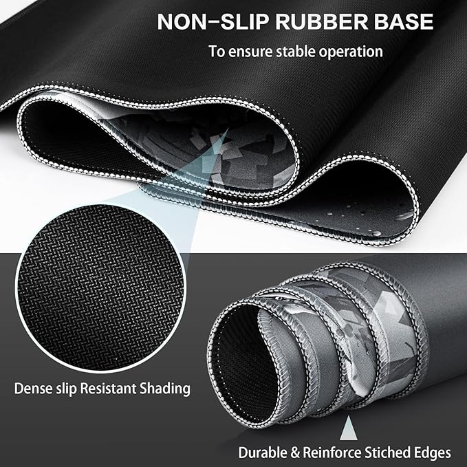 - 【Large and Extended Size】The size of this XXL large mouse pad is 31.5×15.7inch,which is big enough to fit your full-sized keyboard, mouse, laptop,or other item on the desk,providing more space for professional gaming or office work. Besides,you can also use this extended mouse pad as a desk pad,writing pad,platform protection mat. Keep your desk clean and uncluttered.