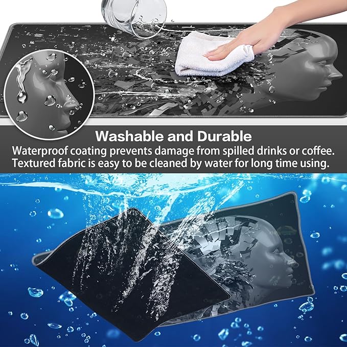 - 【Washable and Stitched Edges】The water resistant coating effectively prevent the damage from spilled water or drinks. This mouse and keyboard mat is easy to be cleaned by wet towel or washed,durable enough for long time using. Double stitched edges protect the mouse mat from wear,deformation,fraying.