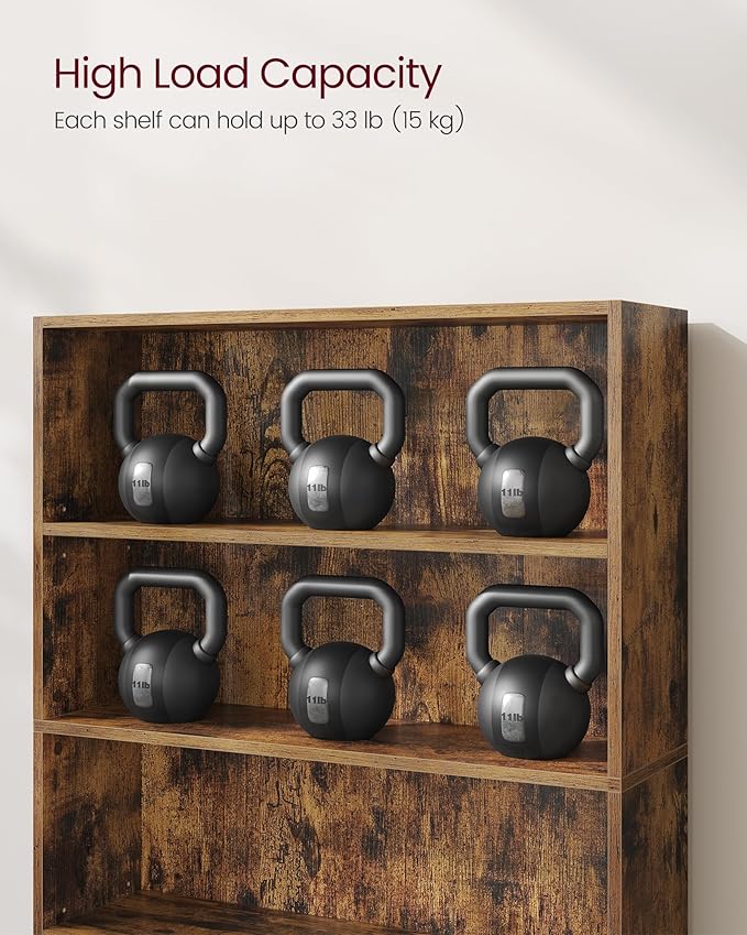 VASAGLE Set of 2 Bookshelves, 30 Inches Wide, 5-Tier Open Bookcases with Adjustable Storage Shelves, Floor Standing Units, Rustic Brown ULBC175X01-2
