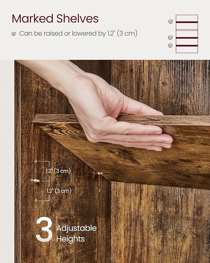 - [Adjustable Shelves] The first, third, and fourth shelves can be adjusted to 3 height positions (up or down 1.2"), making the shelf spacing adjustable between 8.7-11", so tall books, artwork, or storage boxes can easily fit in these bookshelves