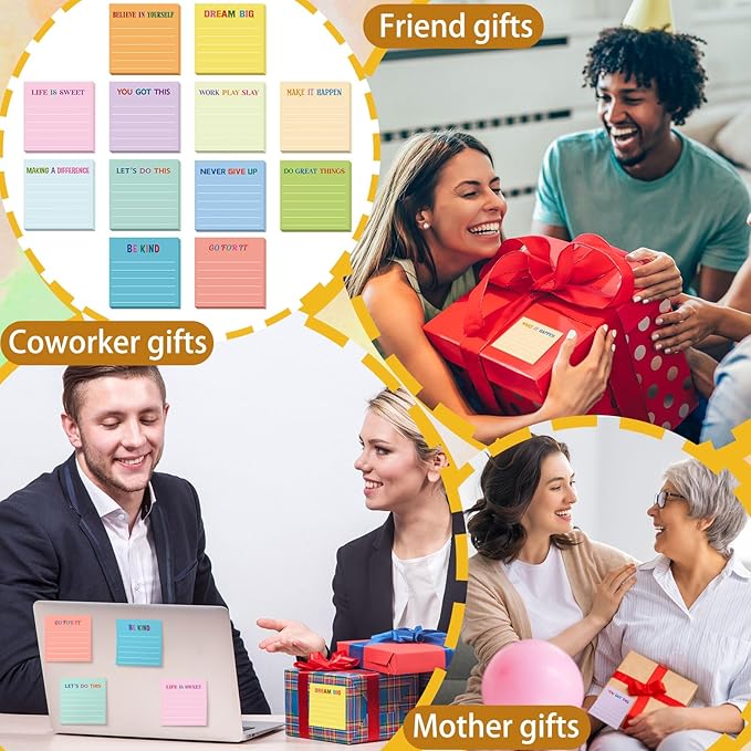 - Inspirational Lined Design: inspirational notepad designed with motivational quotes on colorful memo notepad including [BELIEVE IN YOURSELF], [LIFE IS SWEET], [LET'S DO THIS], [MAKING A DIFFERENCE], [BE KIND], [NEVER GIVE UP], [DO GREAT THINGS] and so on, each mini sticky notes are printed with words of positivity and encouragement to encourage us maintain a positive and optimistic attitude towards life