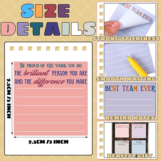 Yinder 24 Pcs Inspirational Sticky Notes Christmas Stocking Stuffers Motivational Sticky Notes Pad Employee Appreciation Gift Bulk for Teacher Nurse Coworker Office 3 x 3'' (Team,Elegant)