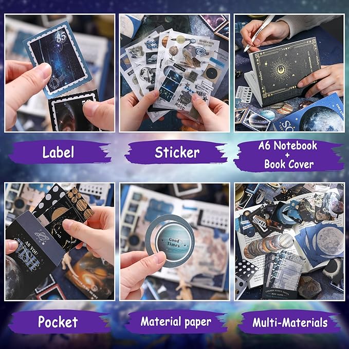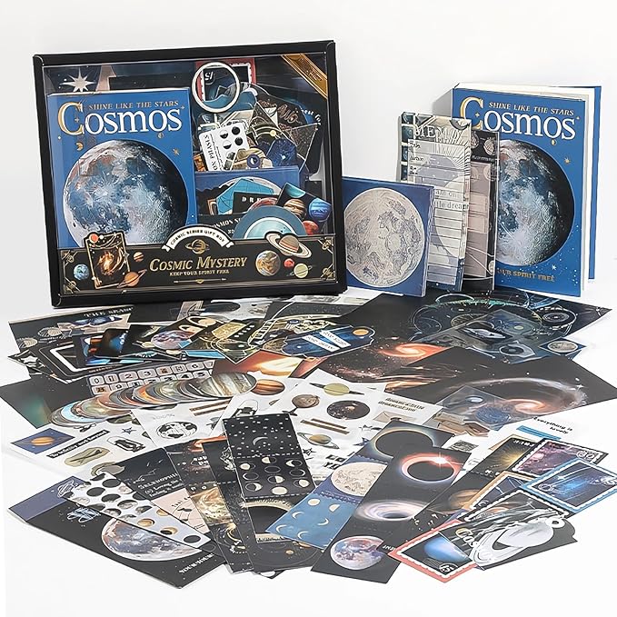Draupnir Scrapbooking Supplies Kit, Aesthetic Cosmos Scrapbook Kit for Junk Journal, Stationery, Bullet A6 Grid Notebook DIY Scrapbook Birthday Craft Gift for Teen Girl Kid Women