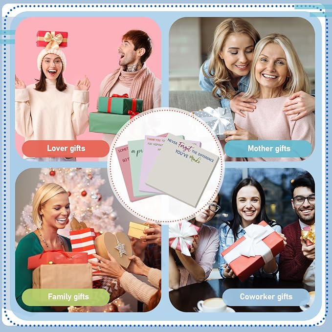 - Quality Material: appreciation sticky notes are designed with self adhesive, strong adhesion, and can be easily pasted on many smooth and clean surfaces, such as books, doors and windows, refrigerators, cabinets, desks, drawing boards, etc.; Moreover, they will not leave behind after removal any sticky residue, odorless and smooth, easy to peel and stick, good adhesion, not easy to remove, bring convenience to your daily work and study, or Christmas sticky notes gift