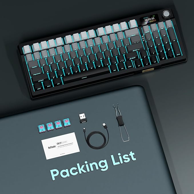 RedThunder K95 Wireless Mechanical Keyboard,TFT Screen & Knob, Trip-Modes Connection, Gasket Custom Hot-Swap Keyboard, RGB Backlit, Pre-lubed Linear Switches, Side Printed PBT Keycaps, Gray Gradient