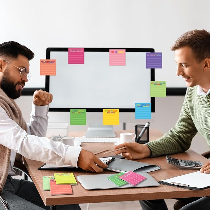 - Wide Applications: the sticky notes are suitable for writing information, sticky notes, shopping lists, schedules, to dos, etc.; They can be pasted on tables, refrigerators, walls, doors, and can also be placed in bags to help remind people to do something important or trivial matter; They are also a practical necessity for office workers, and can be applied in offices and homes