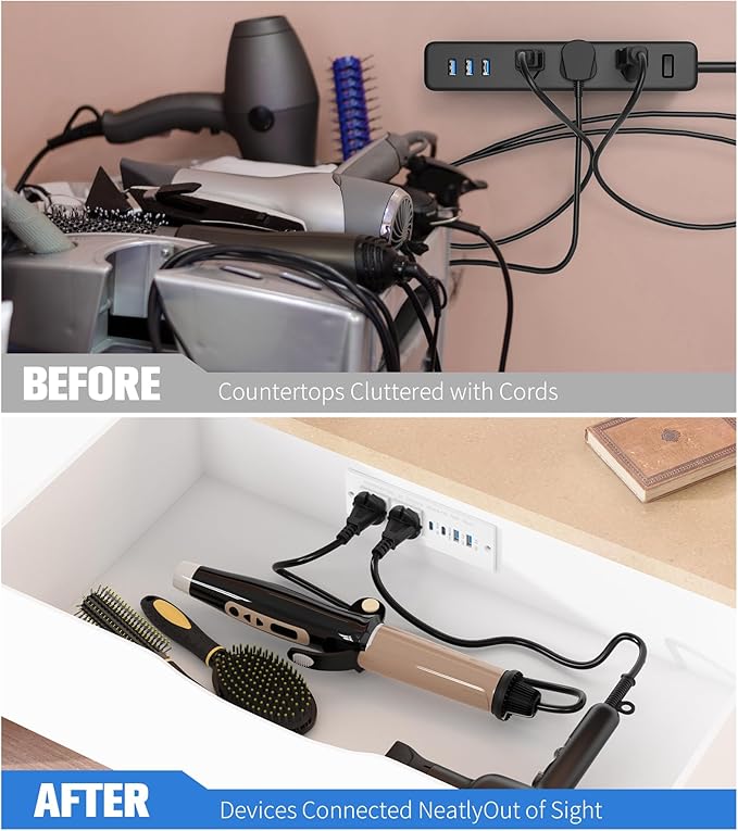 - Compact and Stylish: With a minimalist design that seamlessly blends with your decor, this outlet takes up minimal space. It’s ideal for installation in drawers and can also be mounted under cabinets or inside closets.