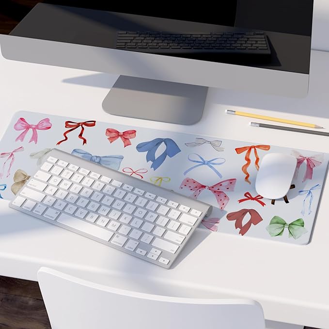 Kawaii Bow Mouse Pad, Girly Coquette Bow XL Large Mouse Pad, Girls Preppy Trendy Laptop Desk Mat For Girly Room Dorm Home Office, Colorful Bows Gifts for Teen Girls,31.5x11.8